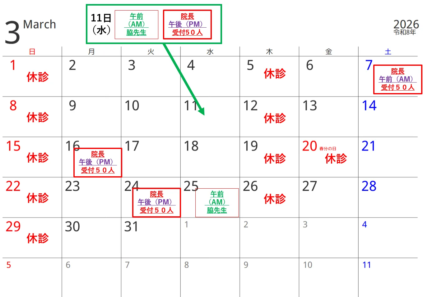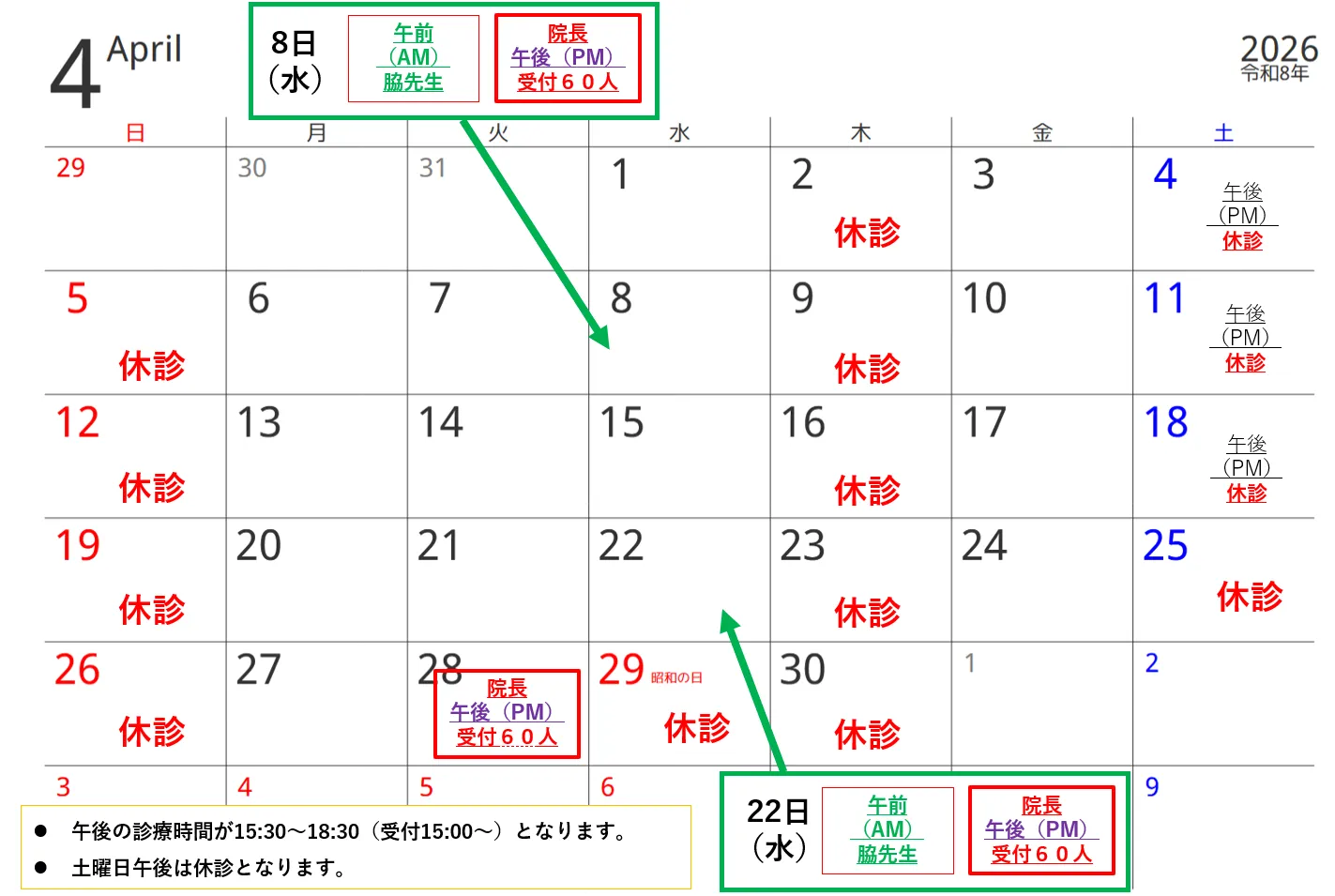 早まることもございます。お早目にご来院いただきますようお願いします。