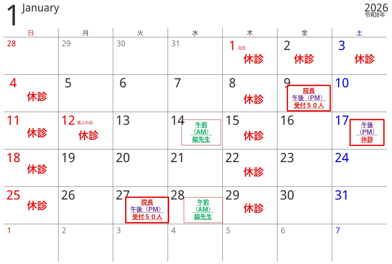 早まることもございます。お早目にご来院いただきますようお願いします。